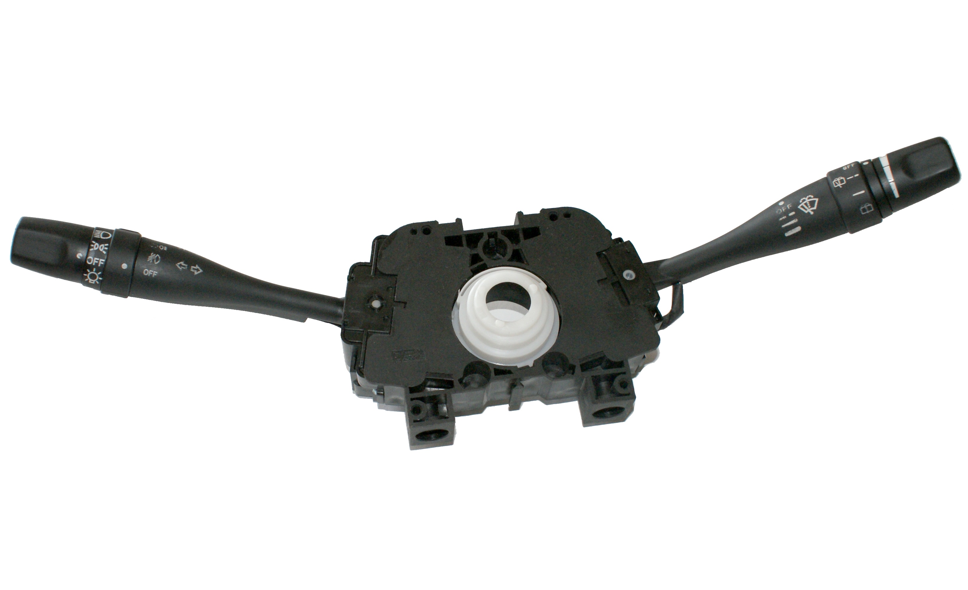 汽車組合開關(guān)一個(gè)操作手柄控制雨刮和洗滌器開關(guān),另一個(gè)操作手柄控制轉(zhuǎn)向燈、車燈和變光開關(guān),另外一些汽車組合開關(guān)還裝有喇叭開關(guān)和多個(gè)備用開關(guān),可以控制汽車上多種電器的通斷。